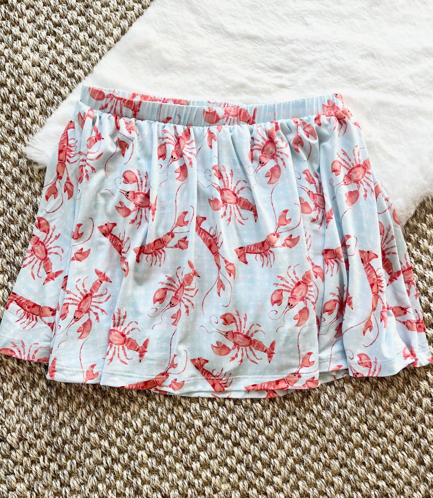 * Crawfish watercolor design * Made from soft, stretchable fabric 95% viscose from bamboo, 5% spandex * Tag-free for delicate skin * Inseam button snap closure for easy diaper changes * Designed to be cute and comfortable everyday wear