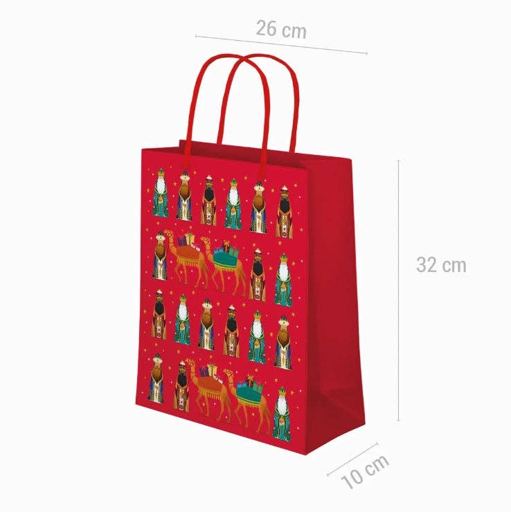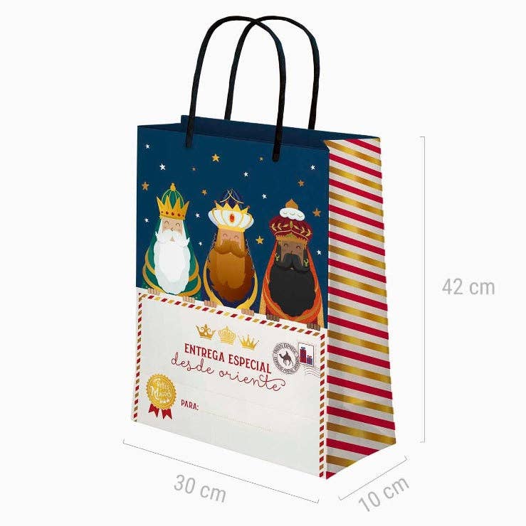 Beautiful Three Kings gift bag. Keep that special detail in this ideal bag that comes with SSMM images. Practical and resistant, with greater durability thanks to its composition of laminated cardboard with a glossy finish. They are also 100% recyclable and biodegradable.