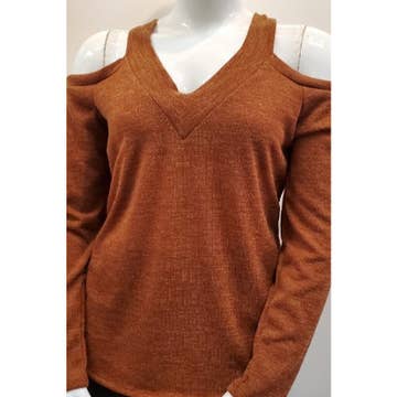 Wholesale Soft Rayon and Stretch Off Shoulder Sweater Knit Top MK3598