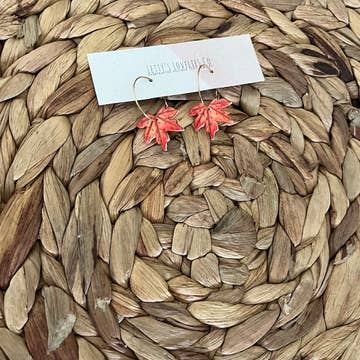 Leather Teardrop Earring "Weaved Rust''