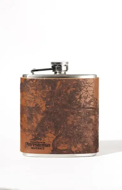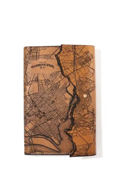 Our Journals are made in Milwaukee, Wisconsin of locally tanned full-grain leather from Seidel Tanning Co. After laser etching a 1930 Map of Pittsburgh, Pennsylvania onto the leather, we machine stitch our refillable journals with bounded nylon thread and include a lined, hardcover Moleskin journal. All edges are beveled by hand with pure beeswax to a gloss finish. Refillable 6" x 9" Journal.