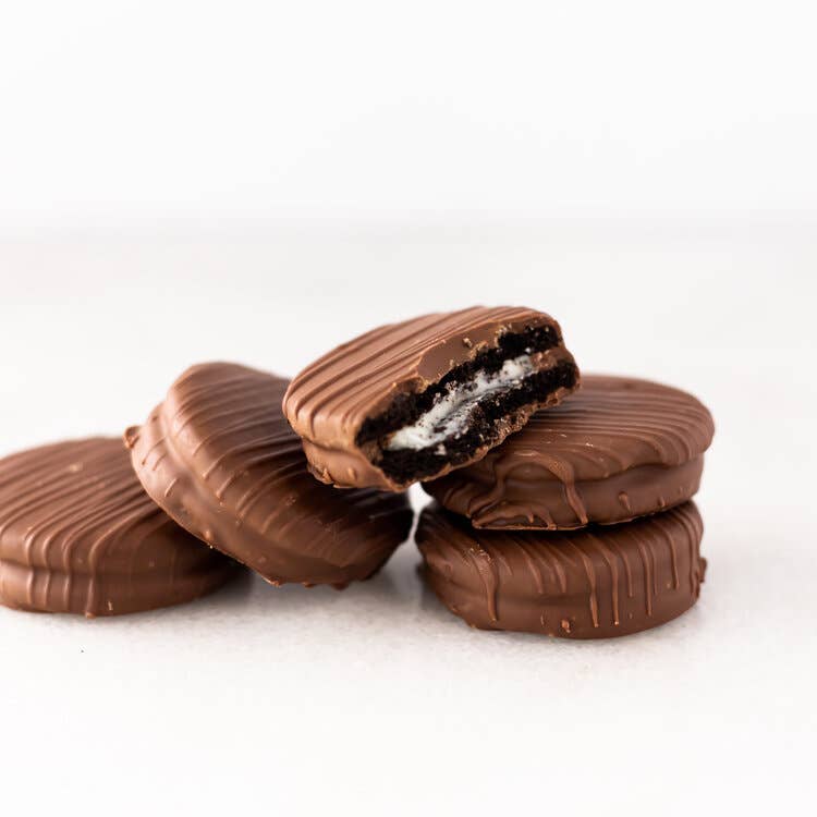 We take a classic Oreo Cookie & enrobe this is in our pure milk chocolate blend. Each item has two O'Oreo's in pack and a very popular impulsive item. You can customize the type of Oreo to be used to create a custom mix in your store.