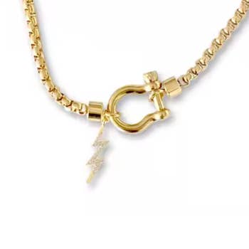 Just a little bit rock and roll. Bowie style tiny lightning bolt on a 20" adjustable fine cable chain. 14k gold over brass + coated to resist tarnish. Designed and assembled in our Sonoma, CA studio.