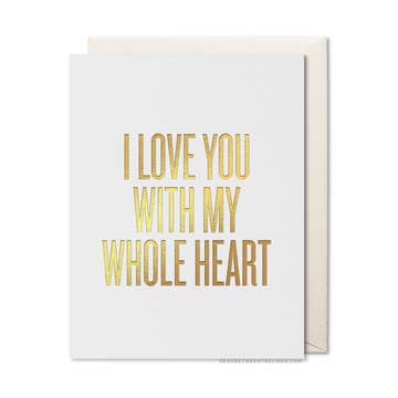 • Letterpress card printed by hand in Texas • Gold holographic foil on burgundy archival-quality cardstock • Folded 4.25" x 5.5" card (A2 size) • Blank interior • Soft white envelope • Packaged in protective cellophane sleeve