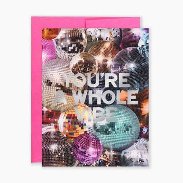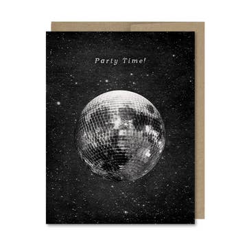 Outside: let's just forget the world for a minute and have a dance party. Inside: blank. This card measures 4.25" x 5.5" and comes with a matching, recycled envelope. Designed in bright white, recycled, heavyweight card stock and printed with archival ink. Comes packaged in a clear, protective sleeve. Size: A2.