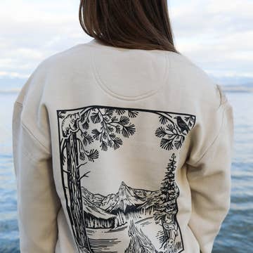 It's easy to take the scenic route in Oregon. Let this handsome sweater remind you of the roads you've taken. Locally designed and printed on a 70/30 cotton/poly sweatshirt with a relaxed fit. Oregon Pacific Northwest PNW Mountain Souvenir Travel Hood Wine Country Cascade Cascades Mount Mt Hood Crew Pullover Sweats Sweatshirt Crewneck Fleece Spring Autumn Winter