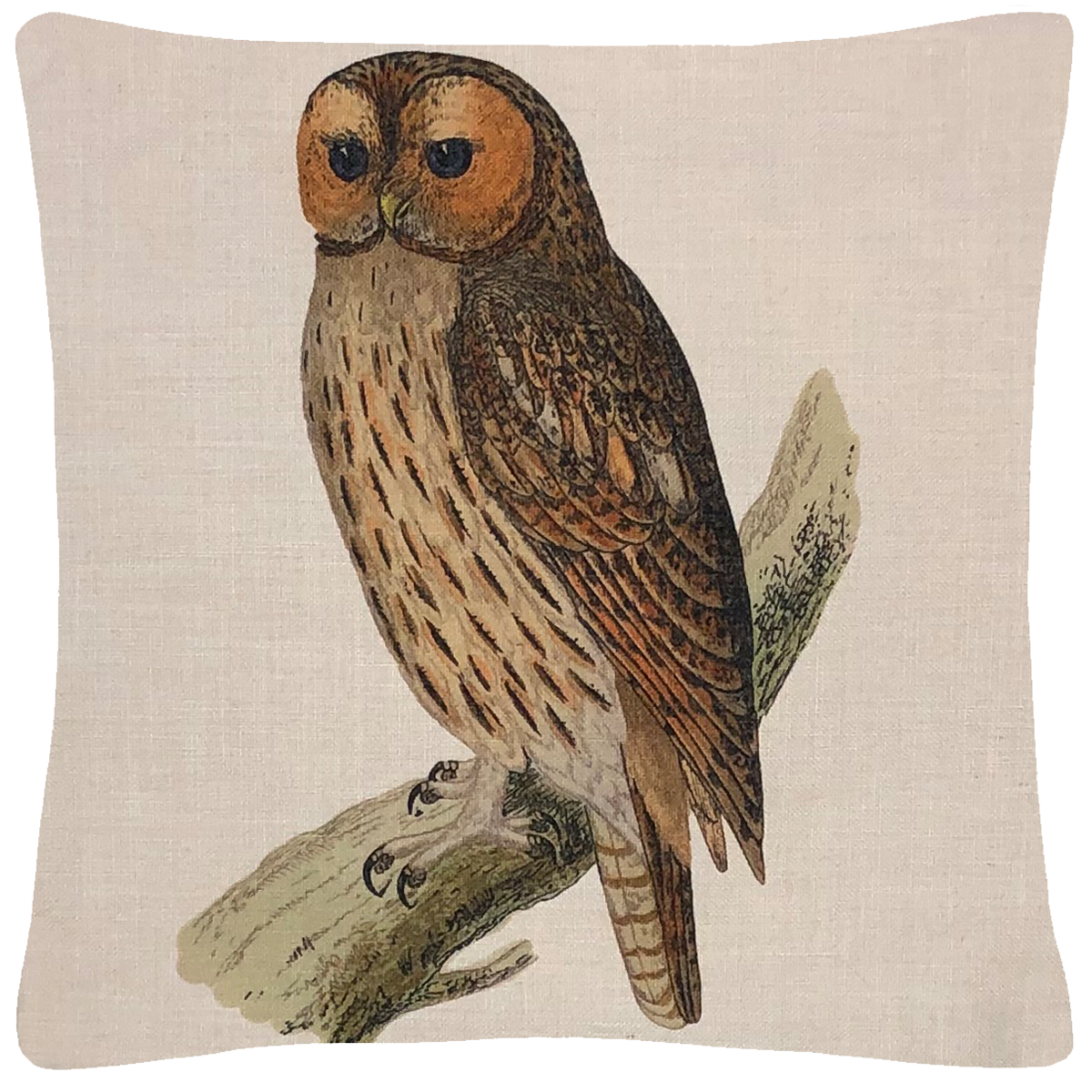 Beautiful pillow cover with an antique print of an Owl. Finely crafted with a hidden zipper for easy cleaning. 100% Polyester/Linen Look 18" x18" Minimum Order Qty: 2