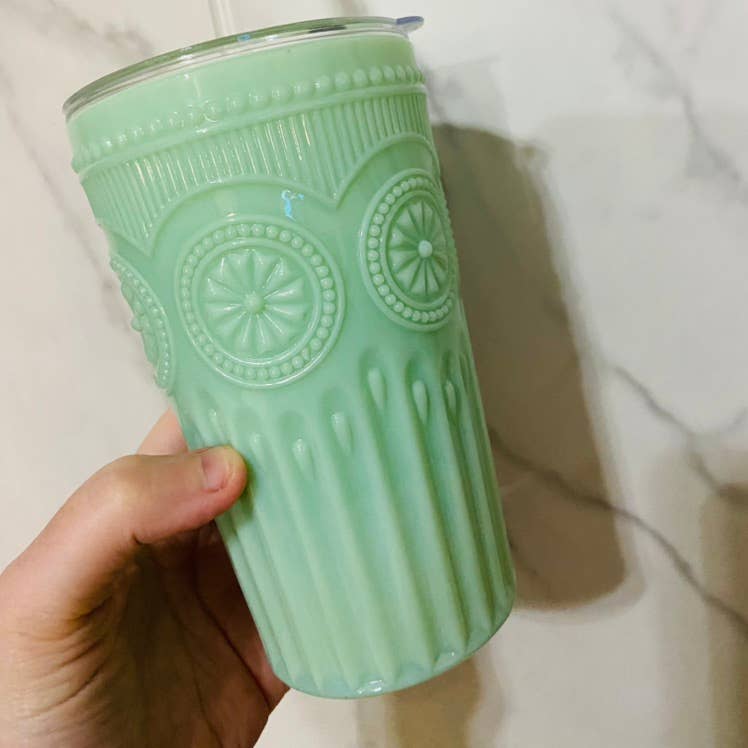 This beautiful coffee tumbler is timeless with its design your elegance will be the focus of all your friends and family. Jadeite Glassware is designed to be timeless. It’s for those who desire something that transcends aesthetic or trend; an experience of quality and value, a sophistication and beauty that adds to the everyday ritual of hosted meals and drink. This glassware has been used by socialites and celebrities in their parties, as well as high-end collectors who appreciate the timeless beauty of Jadeite Glassware