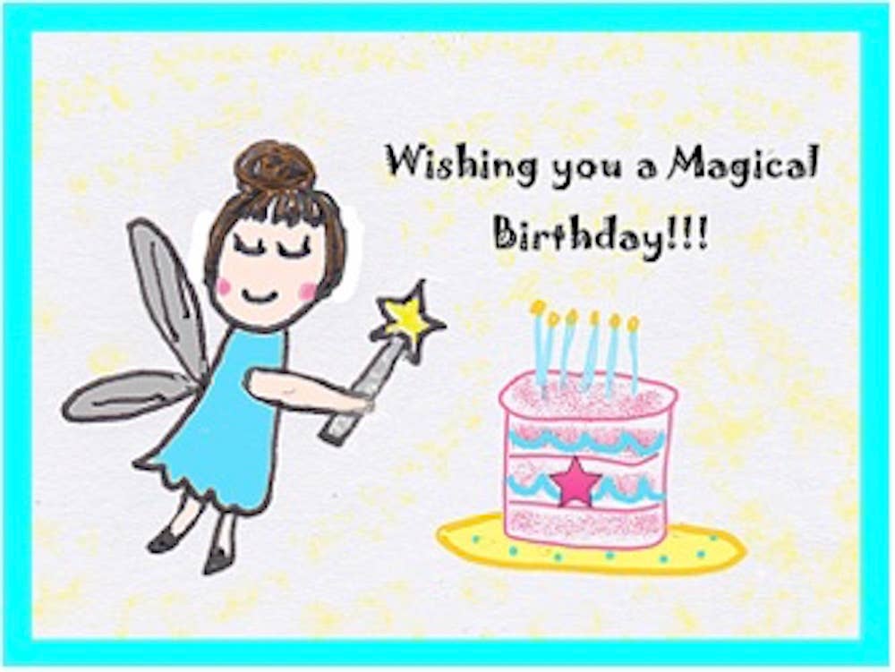 SKU: CGL-7003E Made in China Card Count: 1 Color: Pink and Purple Finish: Glittery and Satin Is Set: Individual Occasion Theme: Birthday Recipient: Children and Girls Season: Year-Round Special Feature: Message Inside and Textured Theme: Sci-Fi & Fantasy Tone: Cute Weight: 28.35 g (1 oz) Dimensions: 17.8 x 12.7 x 0.3 cm (7 x 5 x 0.1 in) UPC: 767636826953