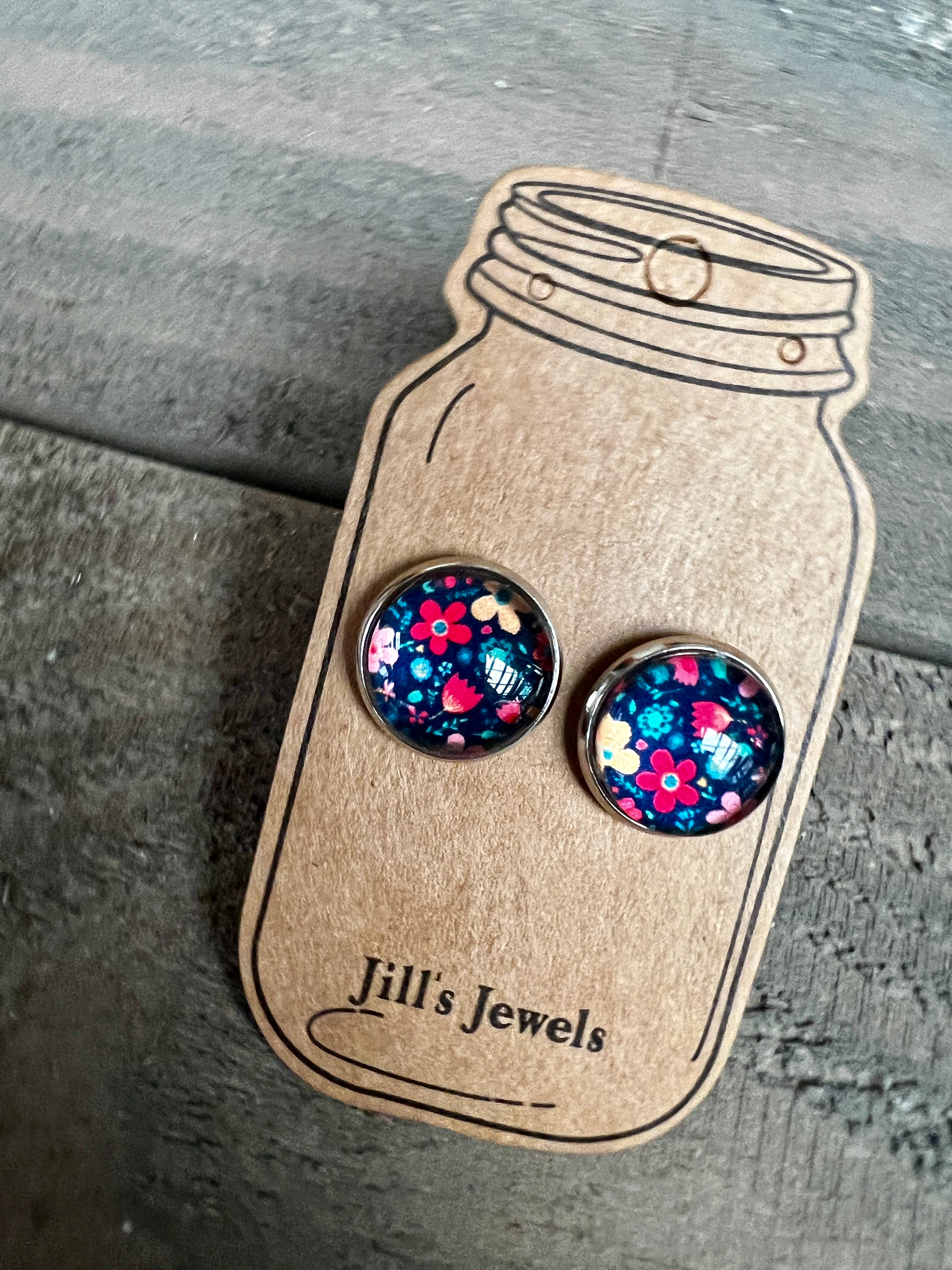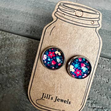 Pop Flowers Fabric Button Earrings