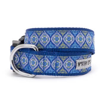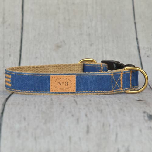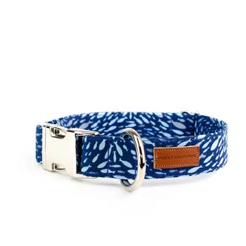 All of our accessories are made on lightweight soft cotton webbing. We use different fabrications, sourced from all over the world, accompanied by solid brass fittings and an adjustable collar. All of our products are handmade and assembled in San Francisco, California. Small fits up to a 15 inch neck. Medium fits up to a 18 inch neck. Large fits up to a 24 inch neck.