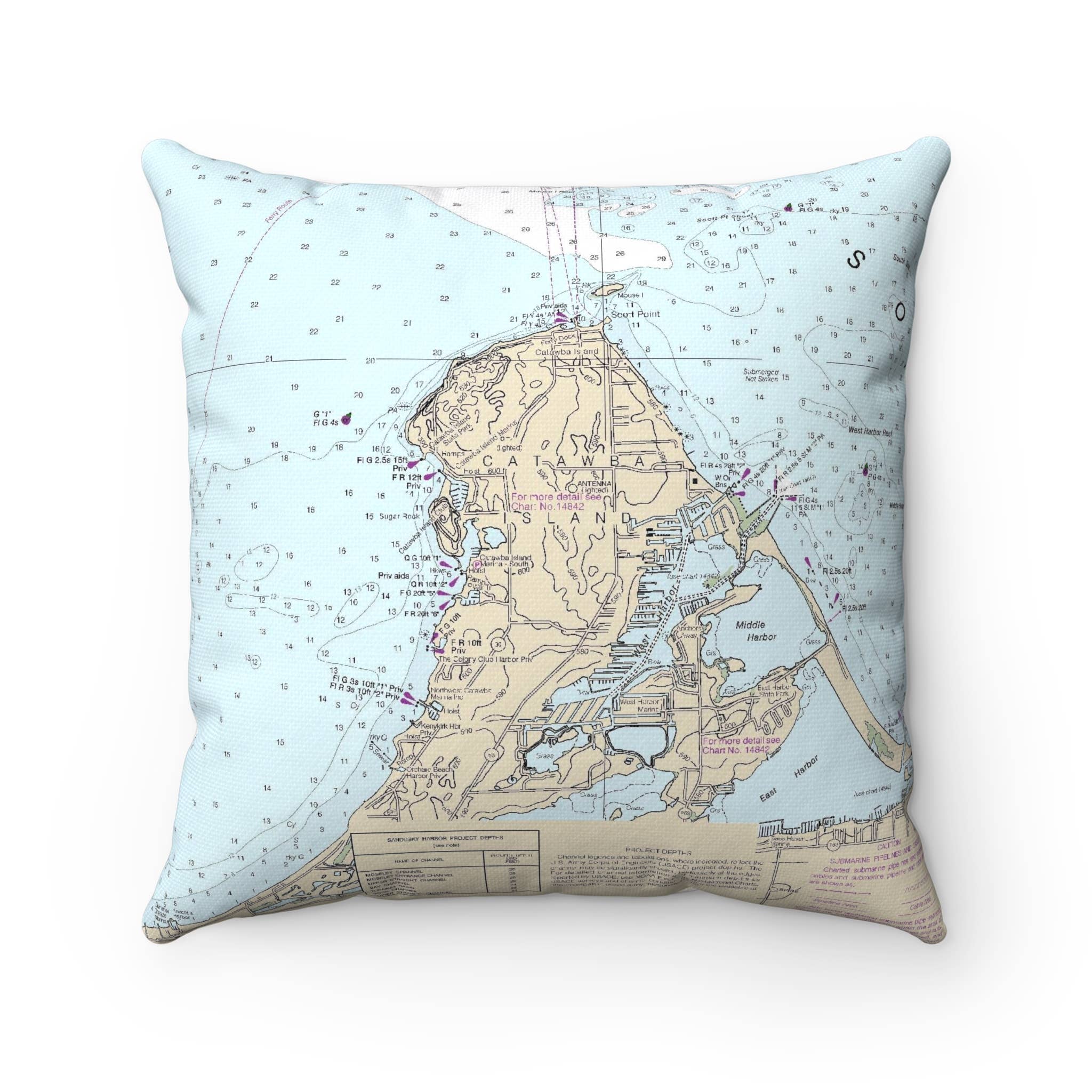 Ox Bow Decor has taken nautical maps to a new level. Coastlines of Massachusetts, New Hampshire, Maine, Connecticut, Rhode Island, New York and New Jersey are now in Yachts, Scallop Shells and Vintage Bathing Suits. Other coastal locations are available upon request. Pillows have hidden zippers in the back and linen covers come with feather down fills and Sunbrella covers come with faux down poly fills.