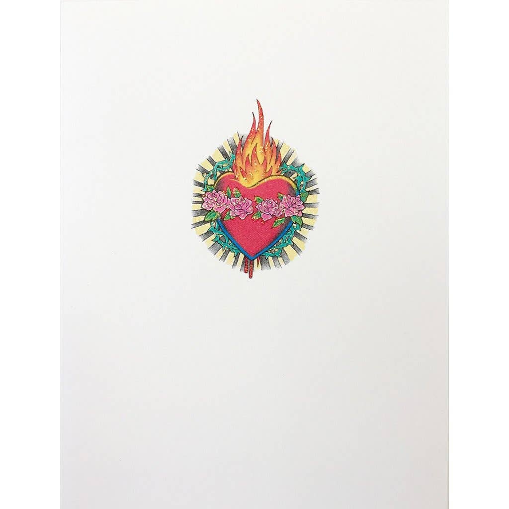 Greeting card, Hand embellished with fine glitter. Blank inside. Individually sleeved. Made in USA. Size: 4.25 x 5.5