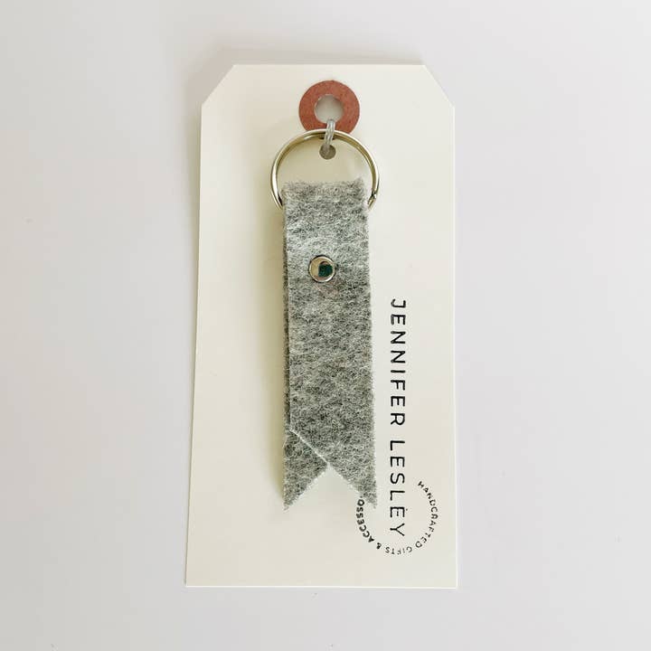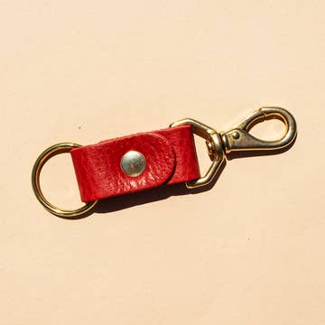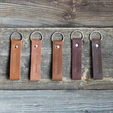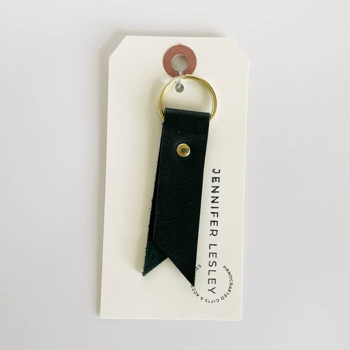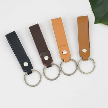 Add a touch of detail to your key ensemble with these minimalist key rings featuring a 3/4" wide ribbon of vegetable tanned leather on a 1" split ring. Each piece of leather is secured with a delicate rivet in your choice of brass or nickel plated finish. Approx. 3"x0.75" with a 1" key ring