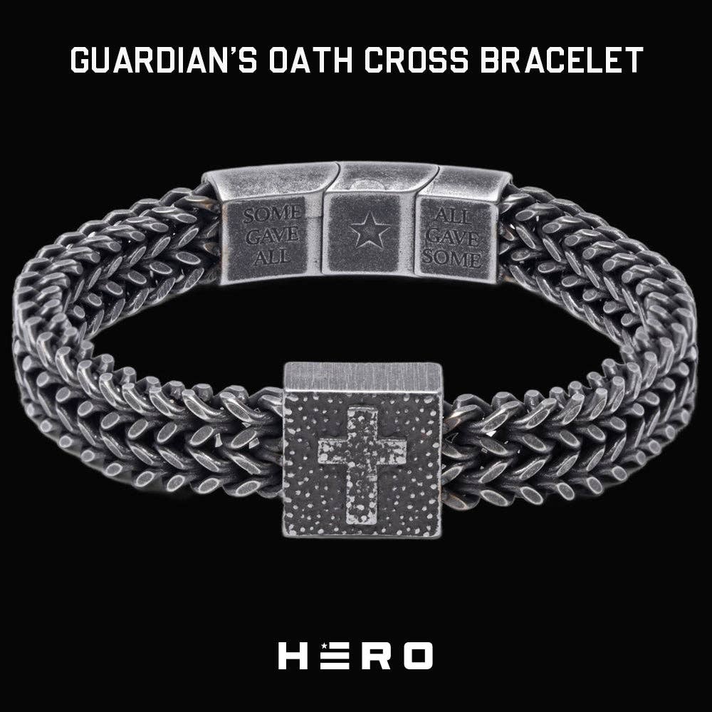 Built with purpose, this bracelet honors the eternal struggle between darkness and light. Its centerpiece depicts Saint Michael slaying the serpent, wings outstretched, spear in hand, shield held high, with Protect Us carved beneath the battle scene. Along one side of the clasp, the words Defend Us In Battle are etched with resolve. The other side features a meticulously detailed spear, symbolizing righteous power and divine strength striking down evil. The reverse side of the centerpiece proclaims a final call to St. Michael. Watch Over Us. It brings every detail into focus. A clear message of strength, faith, and fearless protection. You’re Never Alone Saint Michael leads the righteous forces of Heaven against the darkness of evil. His image is a call to stand firm when life presses in. The St. Michael’s ‘Protect Us’ Cuban Link Bracelet belongs to the ones who keep going, who carry their faith into every battle, and who know they are never alone. Wear it with conviction. Walk without fear. Trust the strength that goes before you.“He will command His angels concerning you to guard you in all your ways.” -Psalm 91:11 GIVEBACK: More important than what this item can do for you is what it does for veterans. For some vets, survival is an everyday struggle, whether they are struggling with physical injuries or PTSD. Getting a service dog can literally save their life, offering them a loving bond, lifesaving hope and assistance. This item helps fund service and companion dogs for veterans in need. Material: Stainless Steel with Antique Finish Bracelet Length: 8” – 9 ” (using includes 1/2” extender), fits 8” -9” wrist * additional links are available to extend the length of the bracelet