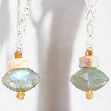 Wholesale Labradorite & Sunstone Drop Earrings 14k Gold Fill Leather