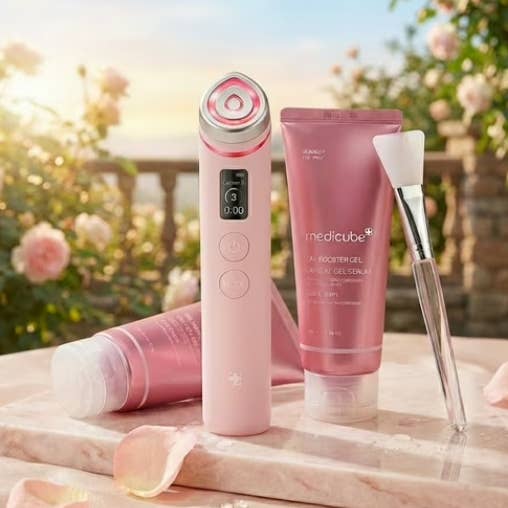 Discover the Medicube AGE-R Booster Pro, a cutting-edge skincare device designed to address a range of common skin concerns. Equipped with advanced technology, this versatile device targets issues like lines, blemishes, pores, and uneven skin texture, delivering a comprehensive skincare solution. With four specialized modes, including Booster, Microcurrent, Derma Shot, and Air Shot, the AGE-R Booster Pro promotes collagen production, stimulates facial muscles, and enhances skin regeneration for a healthier, younger-looking complexion. Compact and user-friendly, this device allows you to enjoy salon-quality treatments in the comfort of your own home, providing long-lasting results with regular use. ▶Electroporation Professional Beauty care Glow Poration Technology gives a hydra & inner glow effect ▶AGE-R Booster creates temporary passageways on the skin layer, rapidly passing active ingredients, helps to bring back skin radiance Skin Penetration Rate: 763% Enhanced Radiance and Elasticity Effect When Used with Booster Pro How to use 1. Long-press the power button to turn on the device. 2. Short-press the mode button to select your desired mode. - Airshot Mode: Use 2-3 times a week - Booster Mode/MC Mode/Derma Shot Mode: Use 1-3 times daily 3. Use the power button to choose the intensity level you want. (Adjustable from levels 1-5) 4. After selecting the mode and level, follow the usage instructions for the chosen mode. Specs Brand : Medicube Target Area : Face Skin Type : All Skin Types Country of origin : South Korea Input voltage : DC 5V / 2A (USB-C) Battery Rating 3.7 V / 2,600mAH Size : 34 x 177.3 mm / 1.3 x 6.9 inch Weight: 150 g
