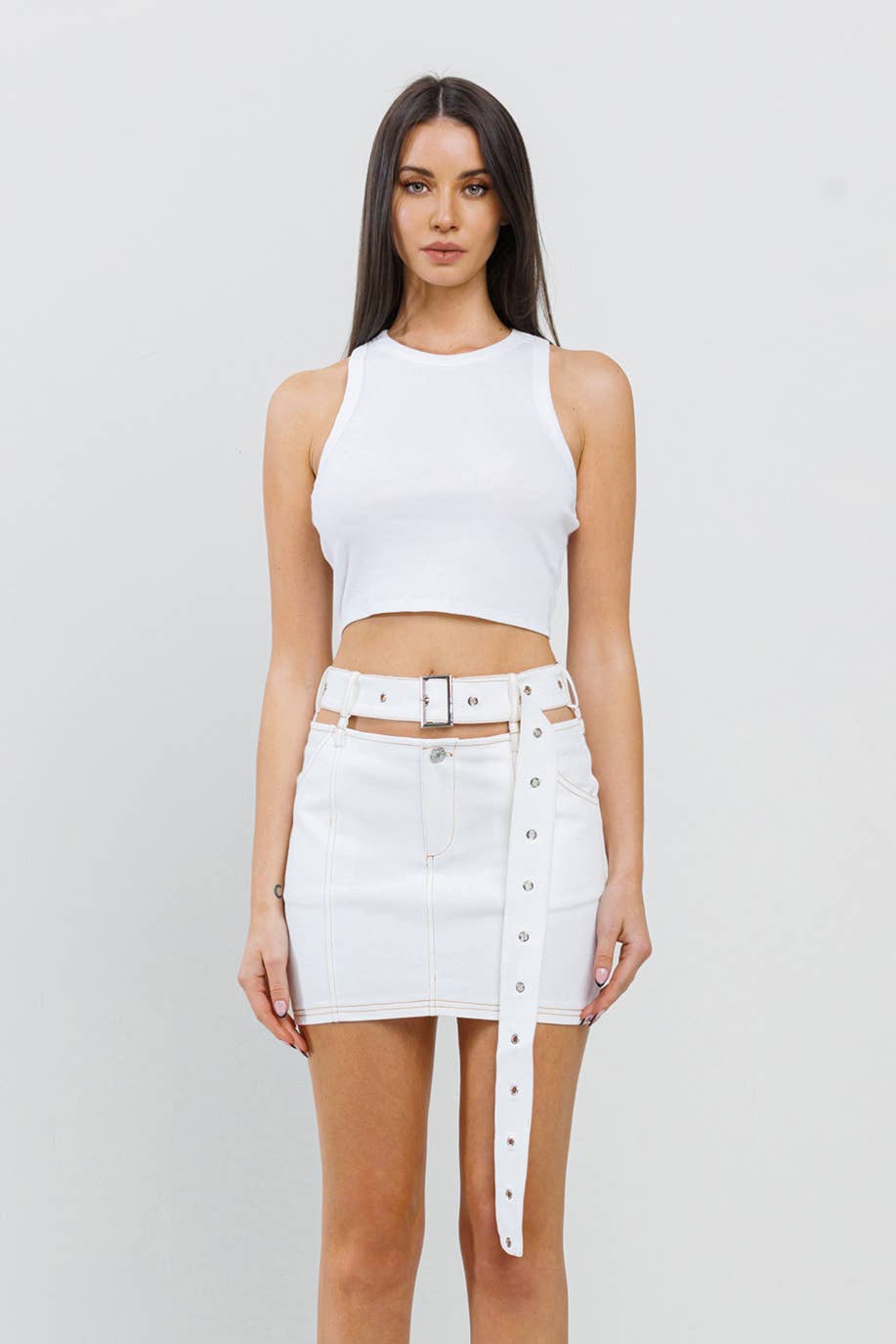 *** New arrival *** - Swirl ruched tank mesh top and low rise mini skirt set - Side hi-lo length - Low rise and elastic band on waist - Stretchy - Model size 5' 6" ( Wearing S size)