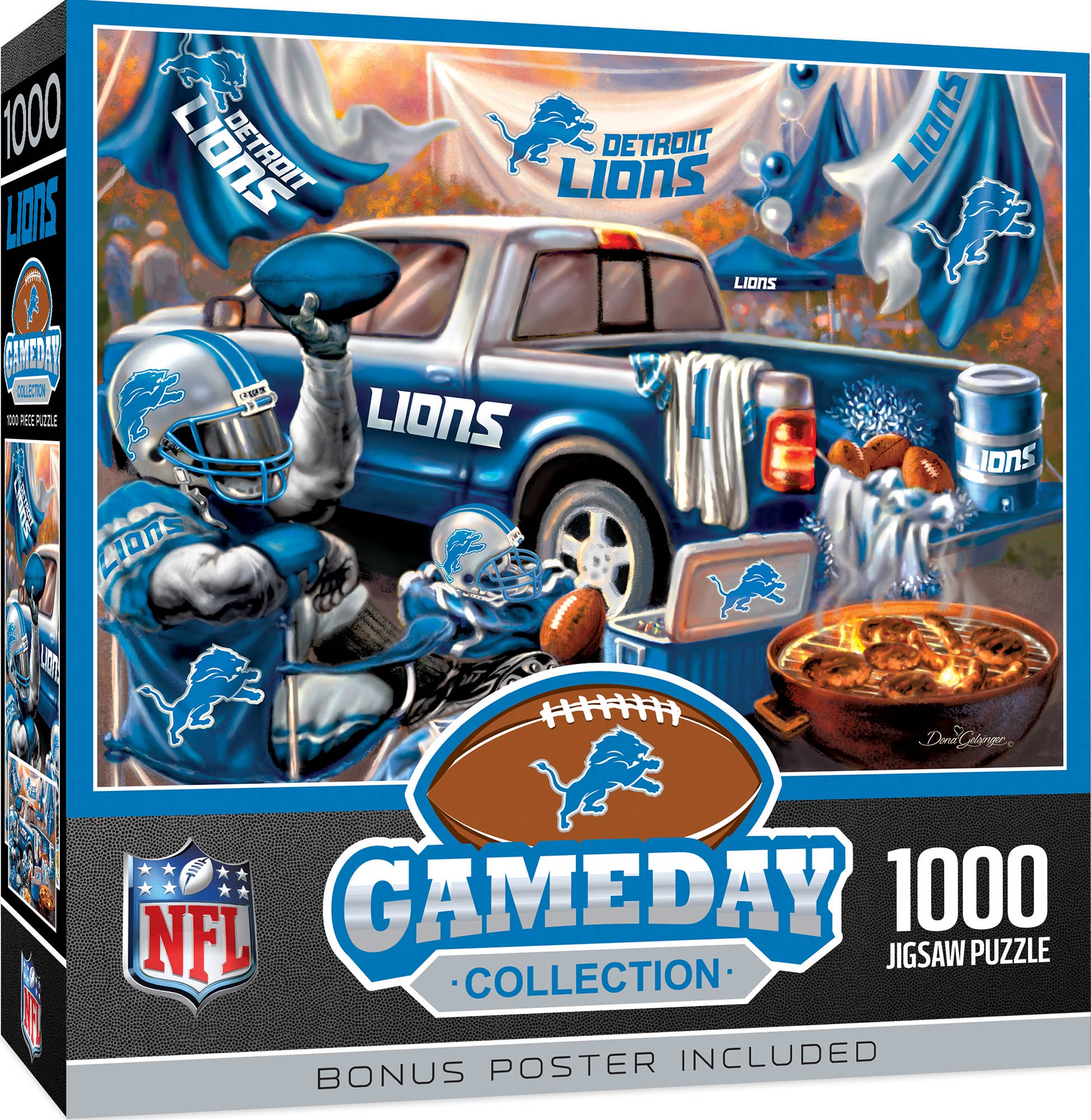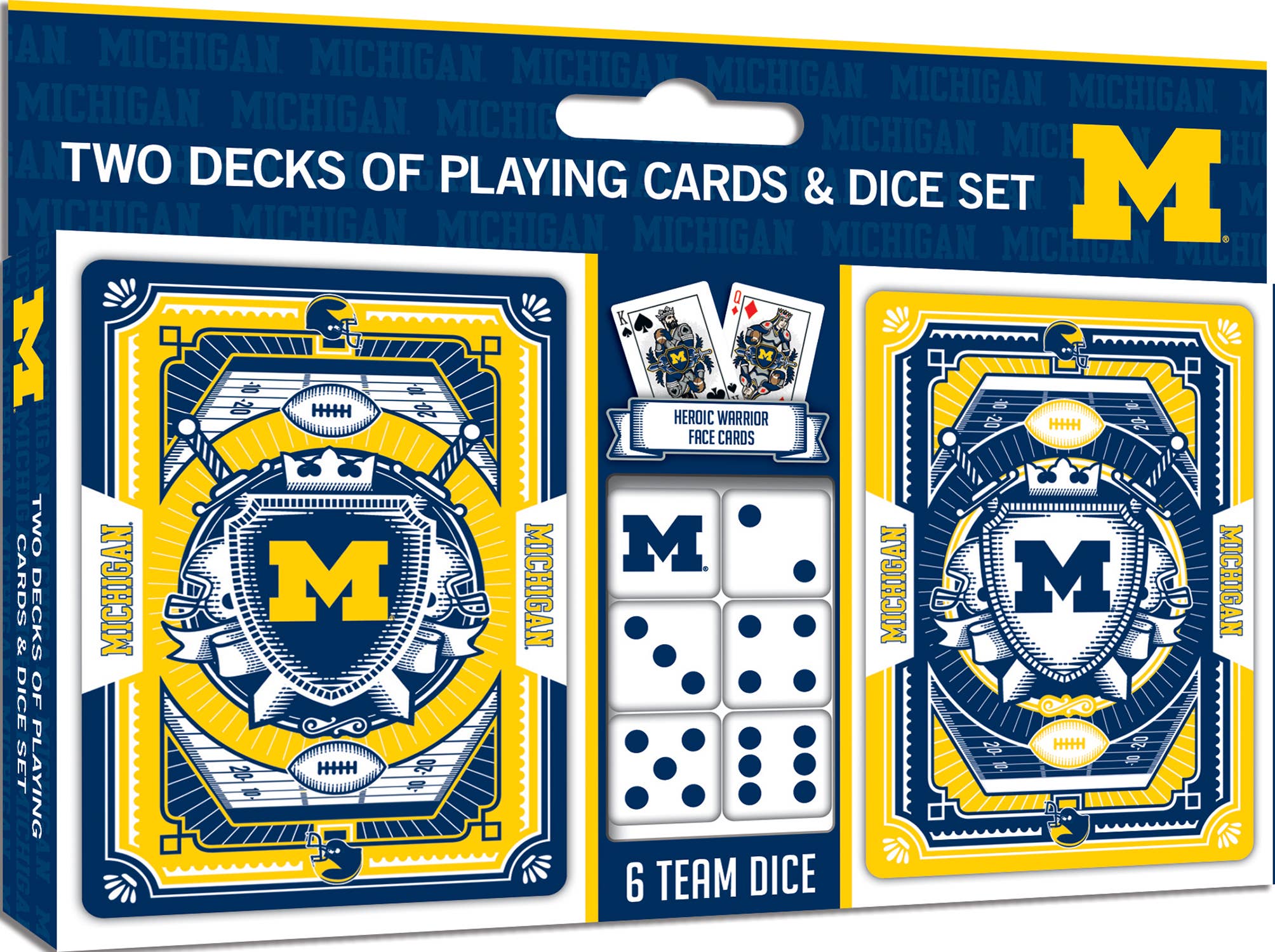 Elevate your game day experience with this officially licensed NFL Detroit Lions 2 Pack Cards and Dice Set, a must-have for any Detroit Lions fan. Featuring two decks of poker-sized playing cards, each deck includes 52 cards and 2 Jokers, all adorned with custom Detroit Lions team designs on the face cards, Jokers, and Ace of Spades. This set also includes five standard size dice, perfect for a variety of games. Whether you're hosting a game night or looking for the perfect Detroit Lions gift, this set is an ideal choice. The cards and dice come in team colors, making them a standout addition to your collection of Detroit Lions accessories. With dimensions of 6.75 inches x 4.92 inches x 0.8125 inches, this compact set is easy to store and transport. Designed for adults, this unisex set is perfect for fans of all ages, offering endless entertainment. Manufactured by MasterPieces, a trusted name in sports-fan games, this set is crafted from various durable materials, ensuring long-lasting enjoyment. Add this Detroit Lions cards and dice set to your collection of Detroit Lions merch and enjoy a tabletop sport game that celebrates your favorite team.