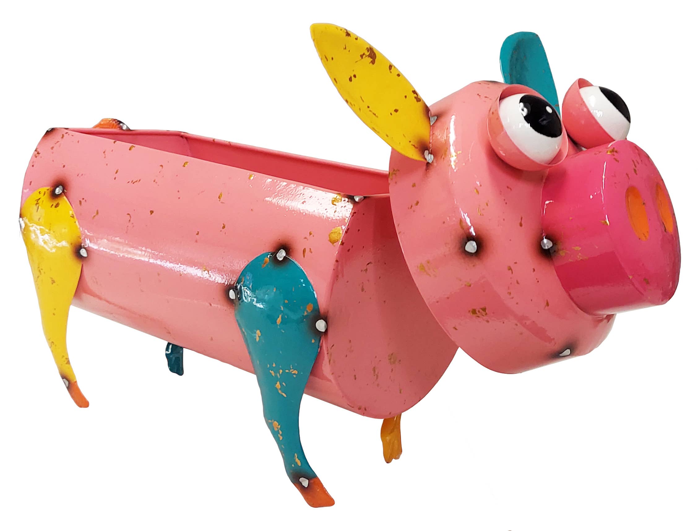 Hand painted and baked enamel garden statuary with long lasting coating and durable element can be used for fun and creative styles for all seasons. Equipped with ample space on its body, it can also serve as a garden planter for your garden. This little friend can definitely make a big statement in your backyard!