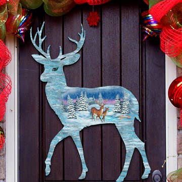 This metal home decor is cut in the shape of a reindeer. It comes as a doorhanger or yard stake. This door hanger is the perfect piece of home decor for Christmas, by adding a cute touch to any front door, living space, or patio! If you have a unique design in mind, let us know! All of our door hangers and yard stakes are made with 1/8" thick aluminum composite sign material, which is widely used in the commercial sign industry. Each design is printed with UV- and weather-resistant paint to provide you with a full color image that prevents fading and scratching for years to come!