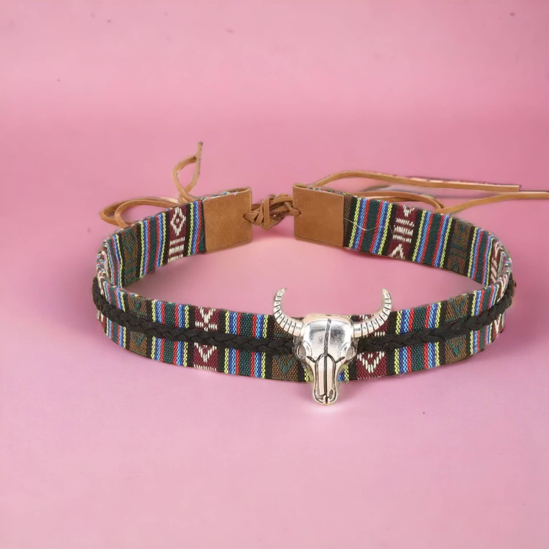 Fully adjustable turquoise/multicolored hat band. Perfect for any hat crown size. Adjustable.