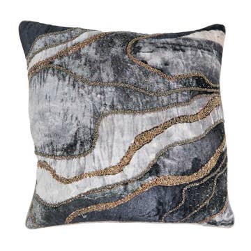 A soft distressed marble print is further enhanced with abstract gold metallic foil print in the Arles pillow. Decorate with this artfully crafted pillow for a pop of shine & sophistication.