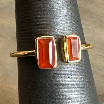Garnet or Amethyst cabochon bezeled set in 14k gold filled on a round skinny band. Garnet measures: 6x4mm Handcrafted at Mabel's San Francisco atelier.