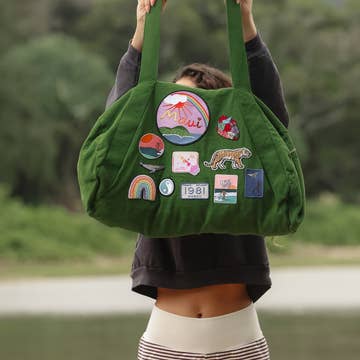 Meet your new adventure buddy! The Daydream Duffel is pretty, practical, and ready for wherever life takes you. With Oxeye Floral Co's signature pressed flower designs on quilted navy cotton, it’s spacious enough to fit all the things and has plenty of pockets to keep you organized. Carry it by the handles or throw on the cross-body strap... it's perfect for the gym, beach, or a spontaneous weekend away. Main compartment: Secure zip closure with lots of room for clothing, towels, or gear. Interior organization: Two open pouches for small essentials (like keys or snacks) plus one zippered pocket for valuables. Exterior pockets: One large pocket stitched into three sections– perfect for water bottles, sandals, or quick-grab items. Straps: Carry it your way with two sturdy handles or a removable, adjustable cross-body strap. Material: 100% cotton Size: 16" L x 12" H x 10" W Designed in Canada <3 Made in China