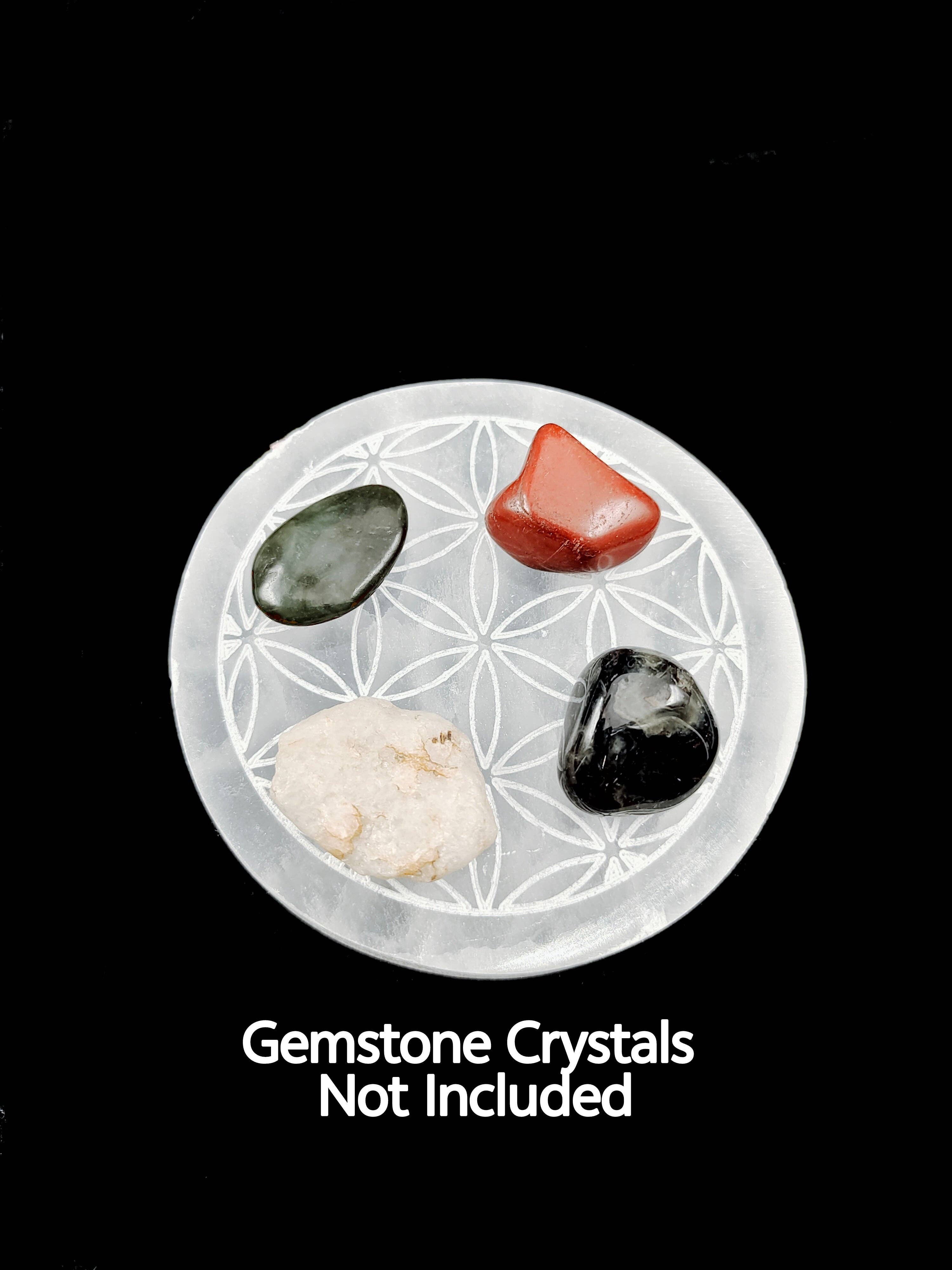 Crystal Grid Plates Round In Wood, 20cm Wide, Flower of Life