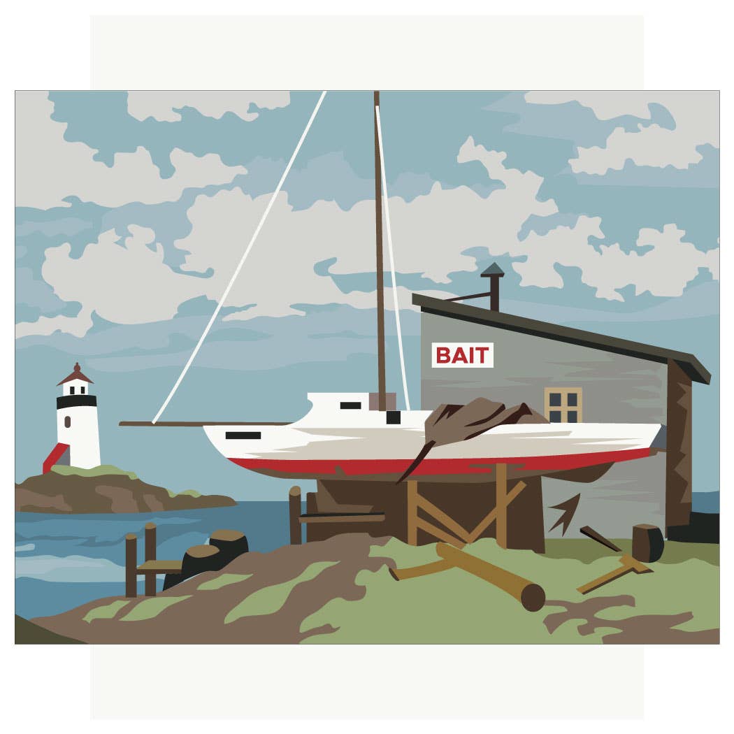5'' x 7'' Paint By Number Bait Shop & Sailboat Greeting Card