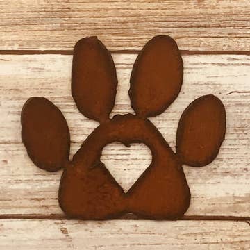 Small Metal Magnets made in the USA. Painted and have strong magnet. Paw, Pets, turquoise. We use recycled metals. Painted and sealed. Color is on one side and rust cleared on the other side. We use all sorts of recycled metals to build our products and source them all over the USA. Customers love our recycled metals Products.