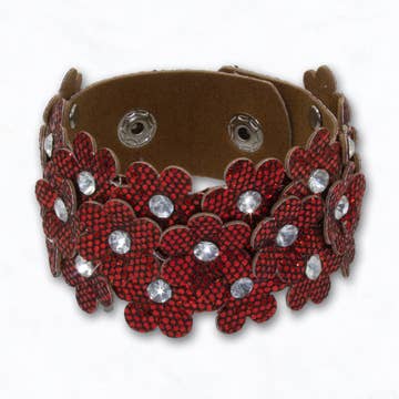 Small Red and White Ombre Leather Cuff