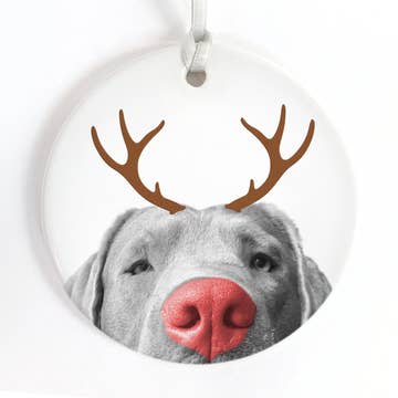 A 3 inch round all aluminum. 45 Mil thick ornament, gloss finish. The same image printed on both sides comes with a hanging ribbon.