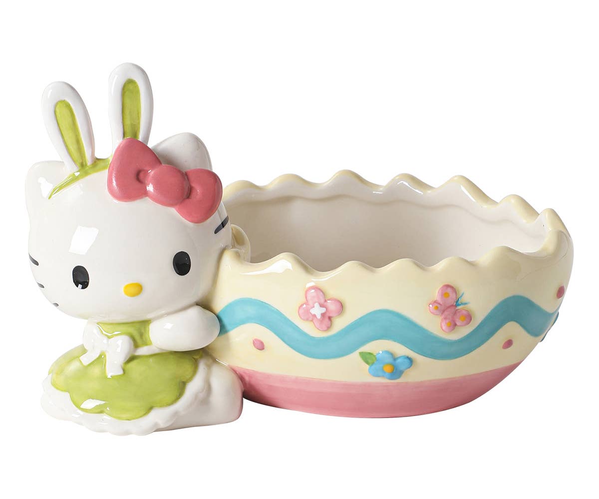 The Hello Kitty Easter Bunny Teapot is an irresistibly adorable piece that captures the spirit of Easter in a whimsical way. This teapot features Hello Kitty dressed as a sweet Easter bunny, complete with bunny ears, a fluffy tail, and perhaps even a pastel-colored bow. This collectible would be a wonderful item for those who love both tea time and Hello Kitty, making it a perfect addition to your seasonal or themed collection. Whether displayed as a centerpiece for Easter festivities or kept as a cherished part of your Hello Kitty collection, this teapot brings a touch of springtime joy and cute charm to any space. Dimension: 9.5" x 5.5" x 9"