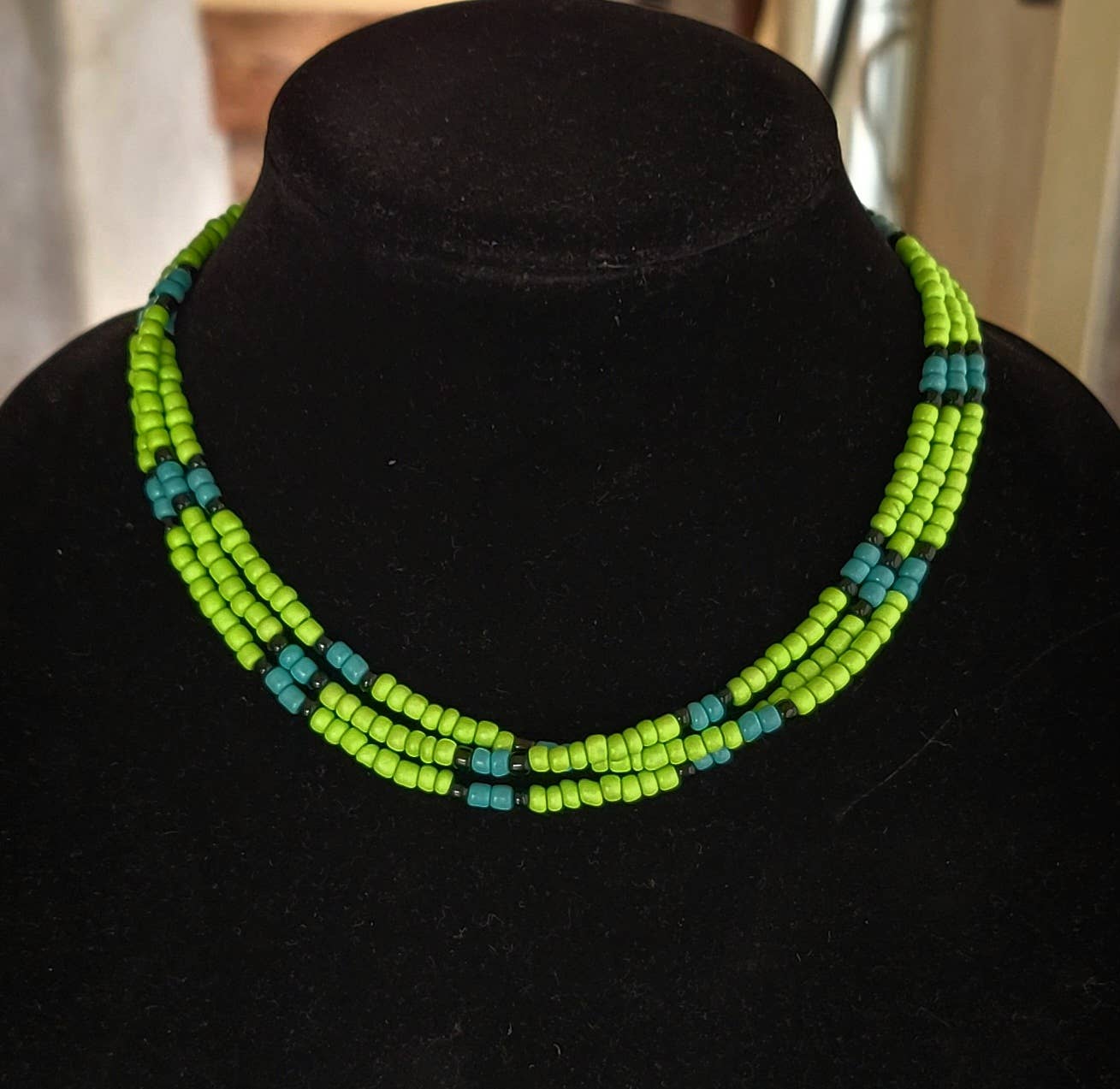 Wholesale Native American Southwest made Turquoise glass bead choker
