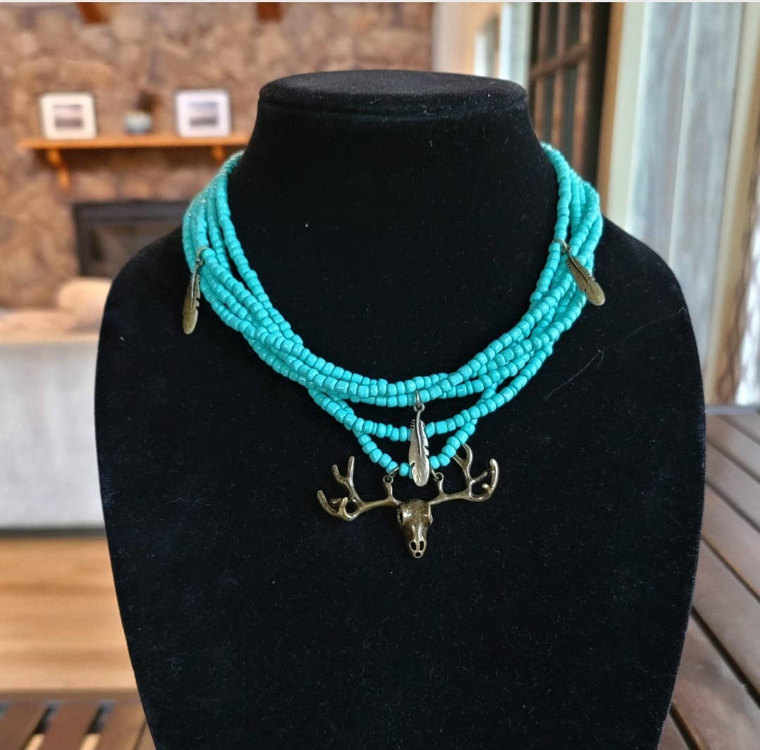 'The Huntress" 5 strand BRONZE choker Turquoise glass beads