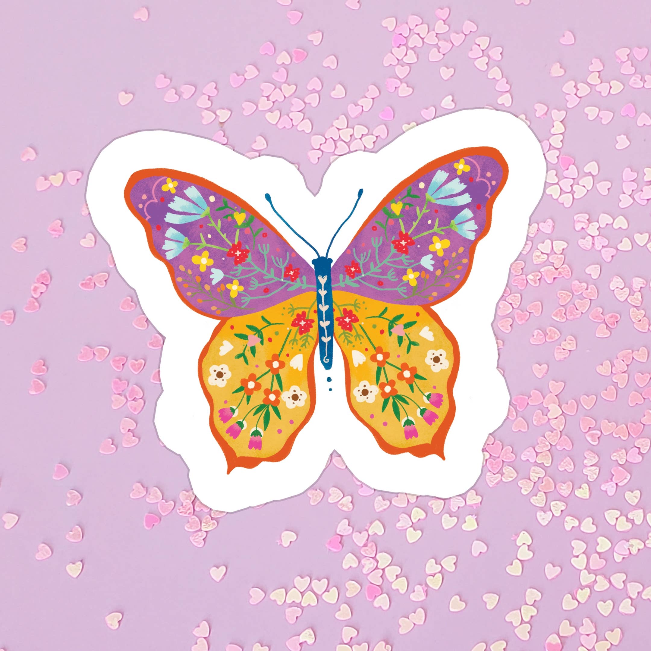 Bright Blue Floral Butterfly, Clear, Sticker, 3x3 inch