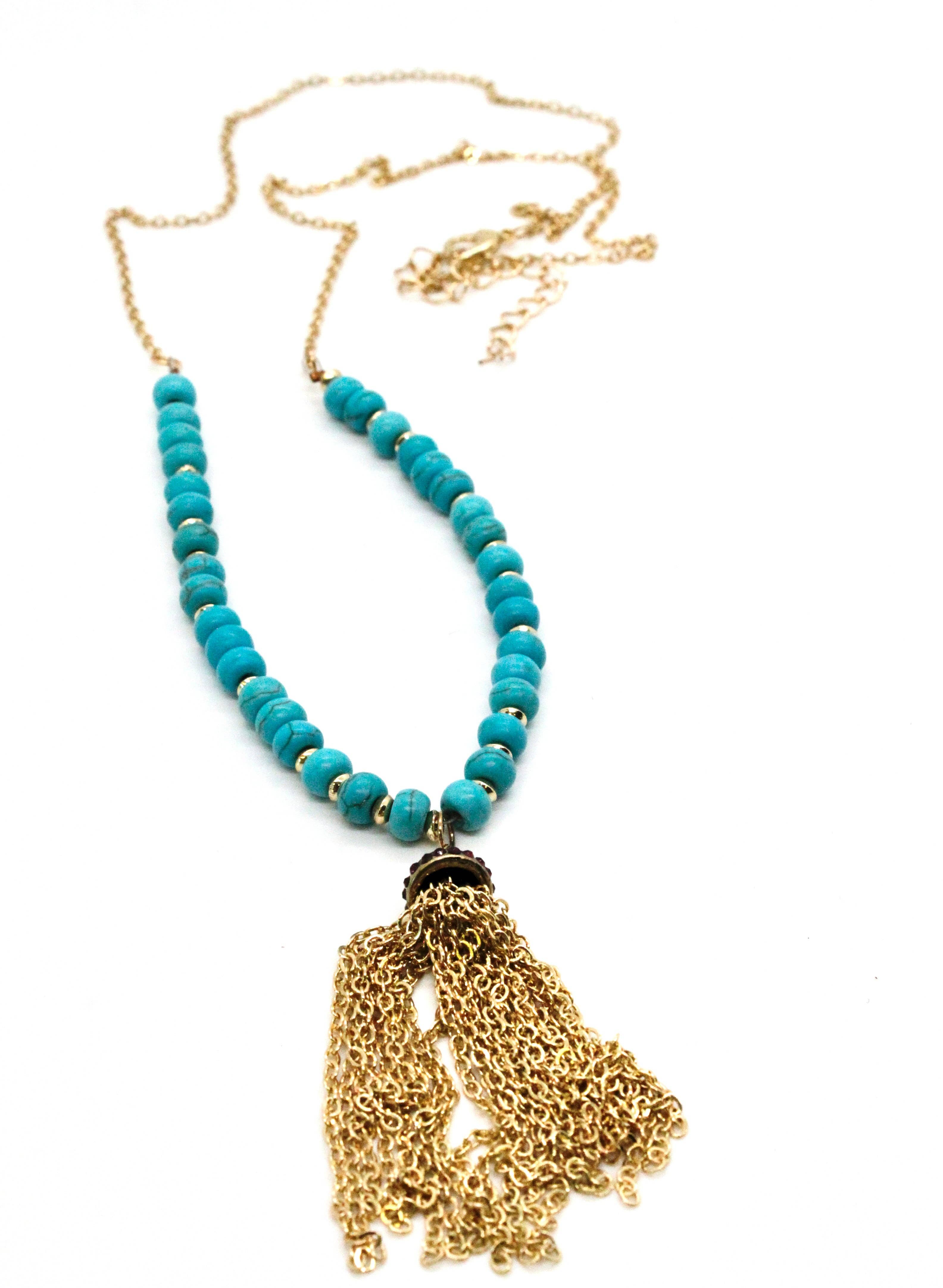 SKU: NK S109 (#6) Made in United States Color: Yellow Gold Material: Gold Plated and Stone Occasion: Everyday Stone Type: Jasper and Turquoise Style: Bohemian and Culturally-Inspired Theme: Spring Product Language: English Weight: 9.07 g (0.32 oz)