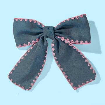 Fire up your fantasy displays with this dragon satin hair bow! Designed in a dark blue color with an embroidered celestial dragon soaring through the night sky, this hair clip is a must-have item for fantasy readers who love the genre's most iconic creature. This is a standout piece that's easy to display beside some of the most popular books around and is sure to fly off the shelves. - Midnight Lagoon Satin Material - Dragon, Moon & Stars Embroidered in Coordinating Color Thread - Double-Lined Material - Bow Adhered to Alligator Clip for Easy Wear - Length From Top to Bottom Approximately 13 Inches