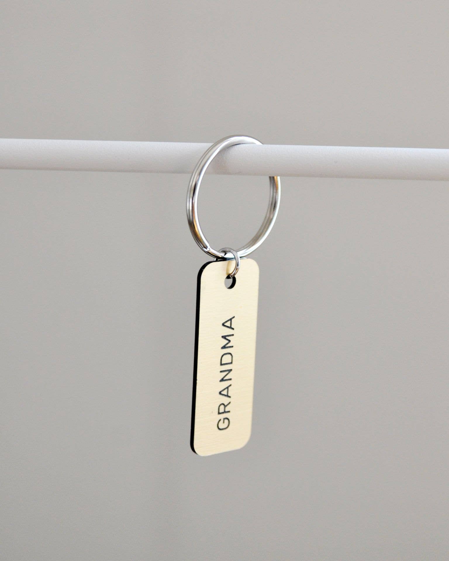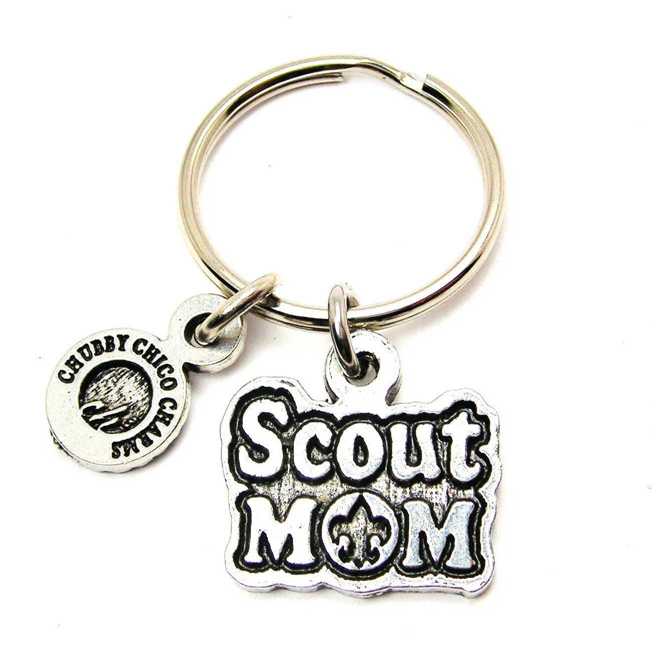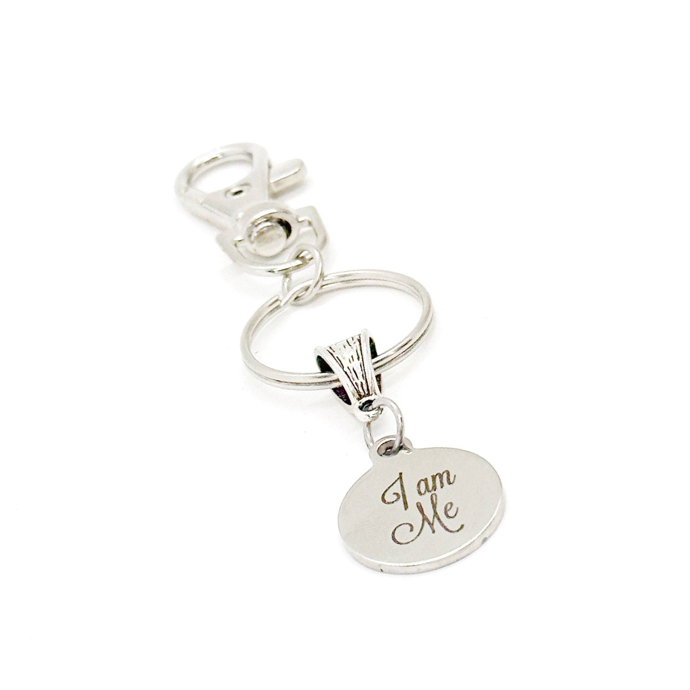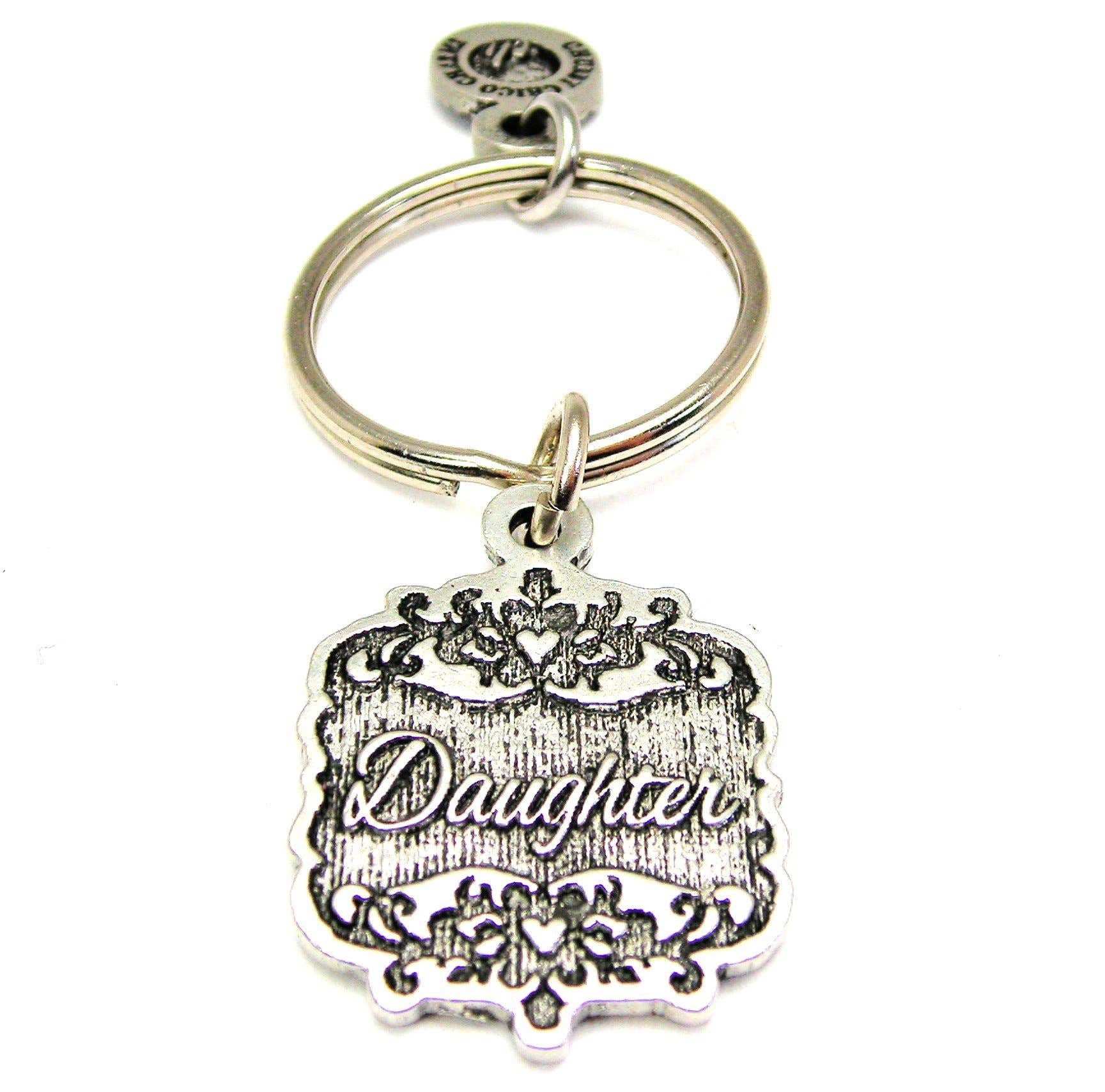 One of our 100% genuine American pewter charms hung from a steel standard size key ring.