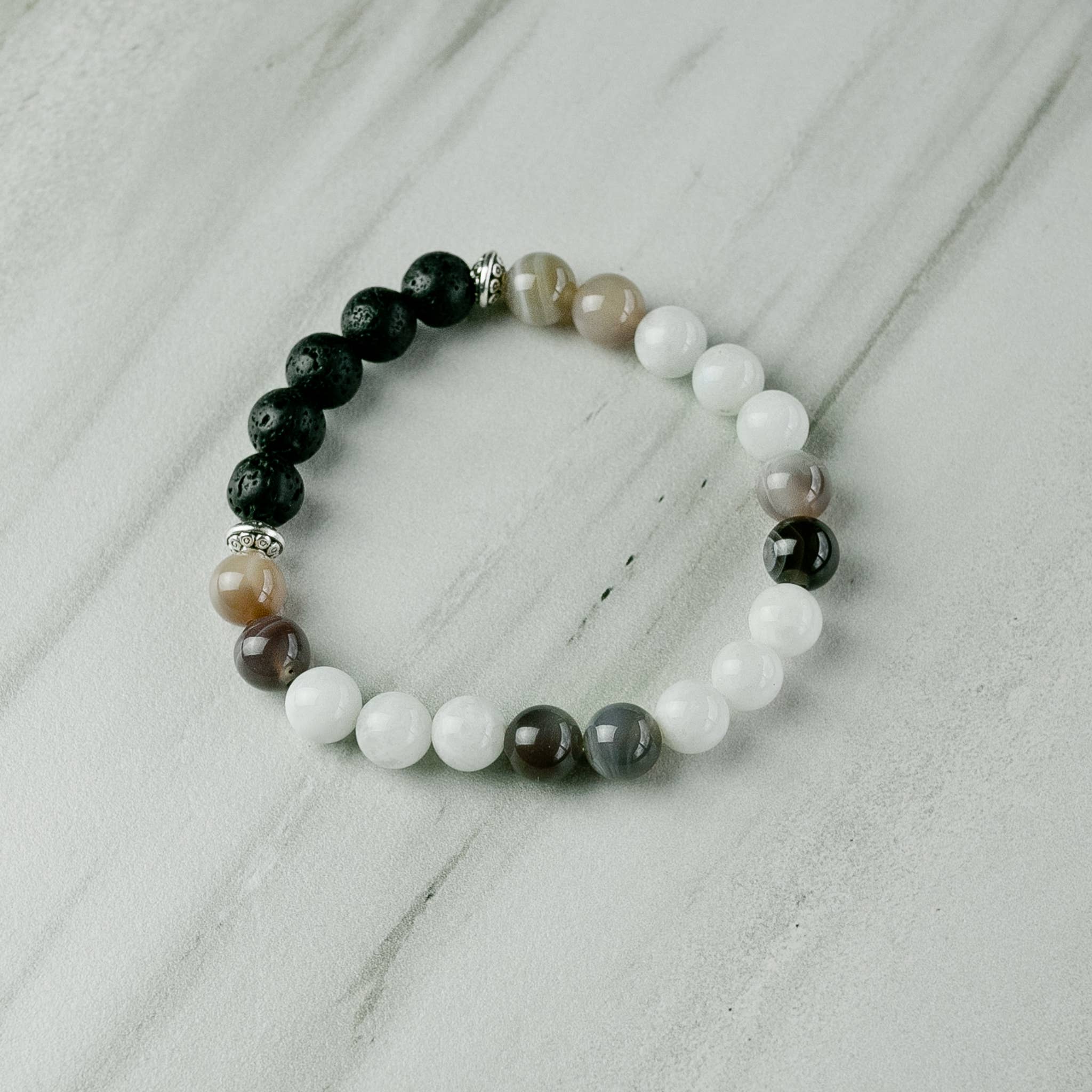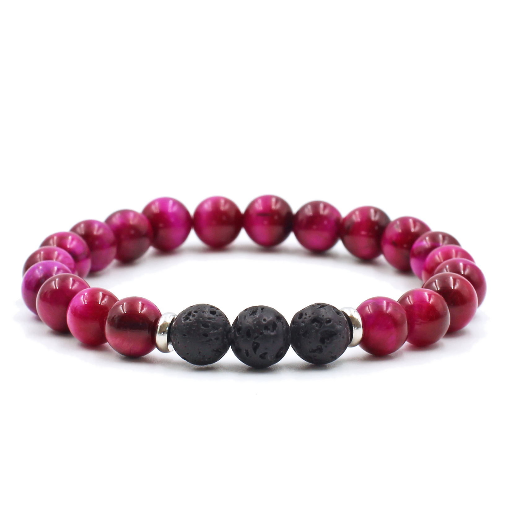 This bracelet features beautiful pink stripe agate gemstones, lava stones, and silver accent beads. Made with high quality elastic cord. Beads are 6mm, which are slightly smaller that the size of a pea. *To use as a diffuser bracelet, apply a drop or two of 100% pure essential oil to the lava stones. The scent will last for 1-2 days. *Bracelet tags include gemstone information and how to use as a diffuser.