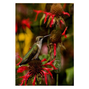 Hand Towel/Tea Towel Hummingbird 100% White Cotton 17" x 30" with hang loop $9.00 net/$18.00 retail/must be ordered in pairs. Info Tag Includes: Hummingbirds are the tiniest birds in the world; a baby is often smaller than a penny. These tiny birds are very smart, though, and can remember every flower they have been to. They can even hear better and see farther than humans.