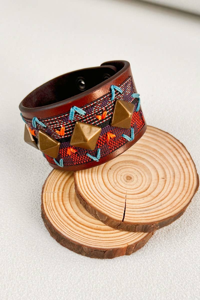 - 100% handmade by fairly paid artisans in our partner worker-owned co-op in Tanzania! - Crafted from free-range, natural leather and lined with soft suede. - Durable and adjustable. - Fastened by a button stud closure with three adjustable lengths. - Adjustable between 7"-8" in length - Three widths available in all styles: Small(.5 inch), medium (1 inch), large(1.5 inches). - Items are all handmade, so there is some variation in leather texture/color. Each cuff comes with a story card with artisan photos and information. A free wooden cuff rack is included with orders of 6 cuff collections or $400 of cuffs!