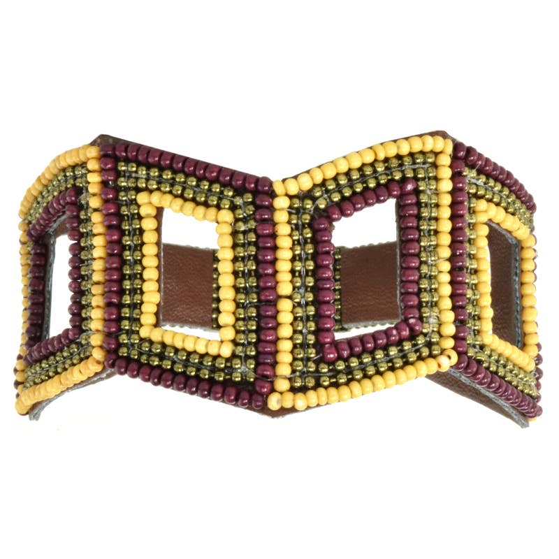 Small Yellow Tri Leather Cuff