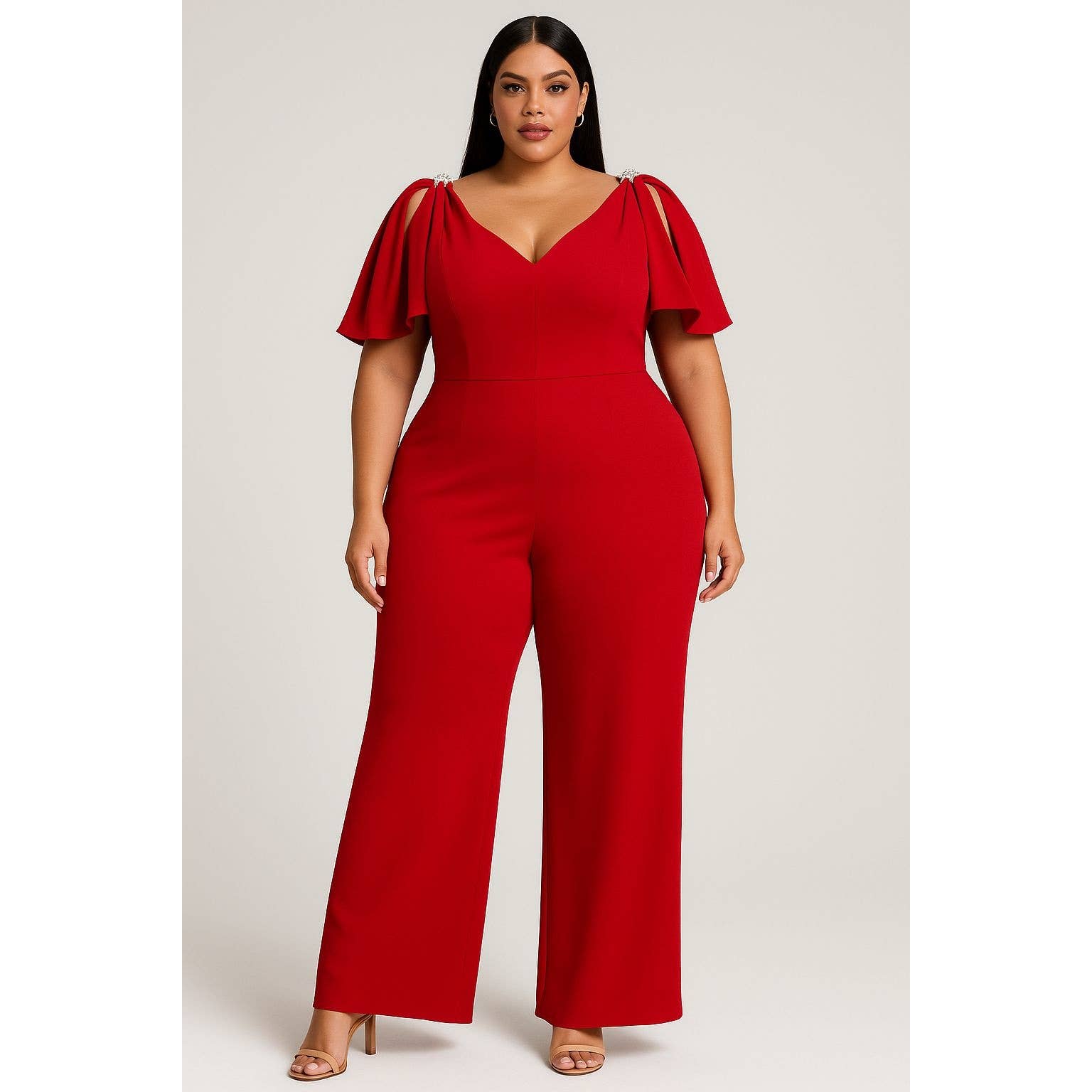 It's a jumpsuit made of stretchy rayon/nylon blend ponte fabric. Poncho flared draped sleeves. Strings tie in bust and waist belt. Front center zip. Standard size S approx. length: 133 cm/ 52.4 inches; Plus size approx. length: 139 cm/ 54.7 inches. FREE WORLDWIDE SHIPPING WITH ONE WEEK DELIVERY TIME. MATERIAL: 60% RAYON 35% NYLON 5% SPANDEX CARE: HAND WASH DO NOT WRING DO NOT BLEACH MEDIUM IRON NO TUMBLE DRY DRIP DRY