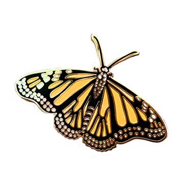 Size 1-1/2" x 13/16" Butterfly clutch fastener Image Description: an enamel pin of a red lobster motif, the motif is bordered in a gold enamel All images, products and designs © Noteworthy Paper & Press
