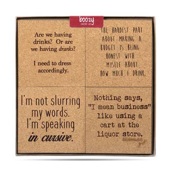 Love the quality of these coasters. The products we chose were mostly funny, but we did get a couple with our town on them. Shipping was timely considering that some of them were custom printed.