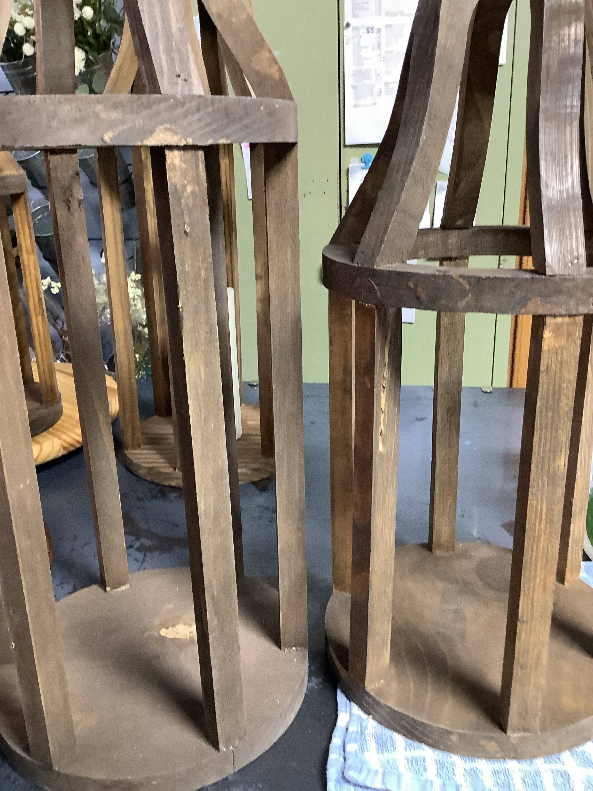 The finish quality is not the best on these lanterns. Some have wood grain, some have paint so they do not match. The bottom is not level so some do not sit flat. There is excess glue dropped and smeared all over. One of them has a quarter size gouge in the bottom.