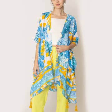Aztec Pattern Print Summer Kimono with Tassels